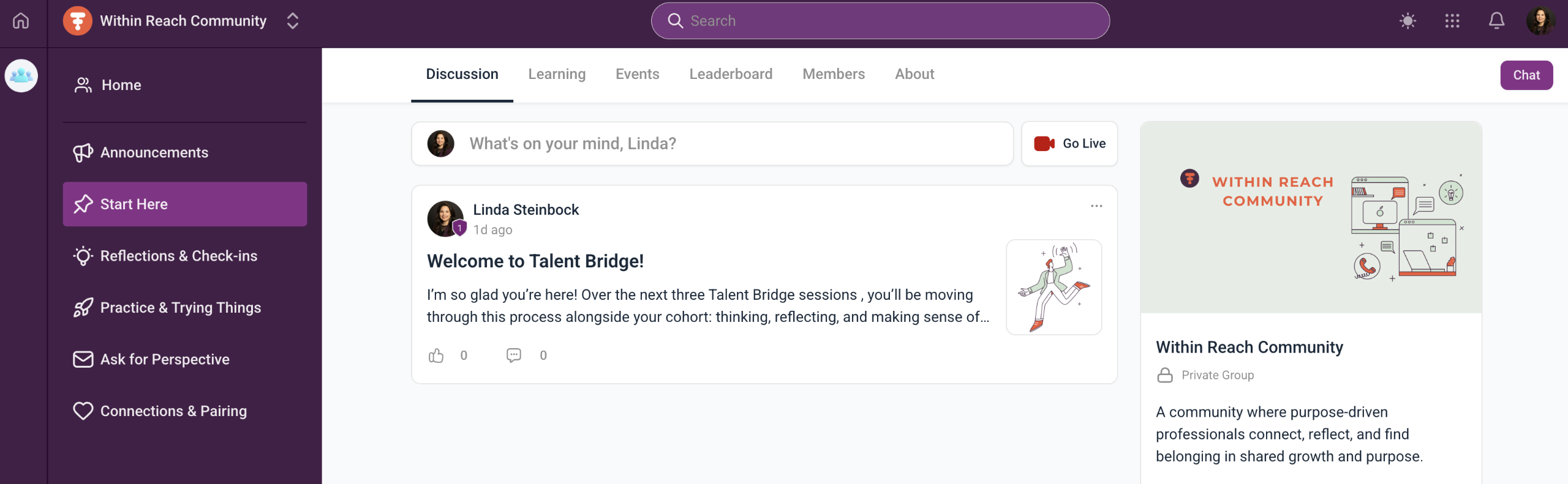 As part of Talent Bridge, you'll have two months' access to a private community space, the Within Reach Community.